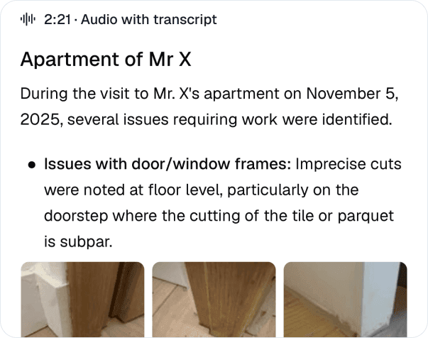 Voice notes, photos, document editing and tracking, with AI.