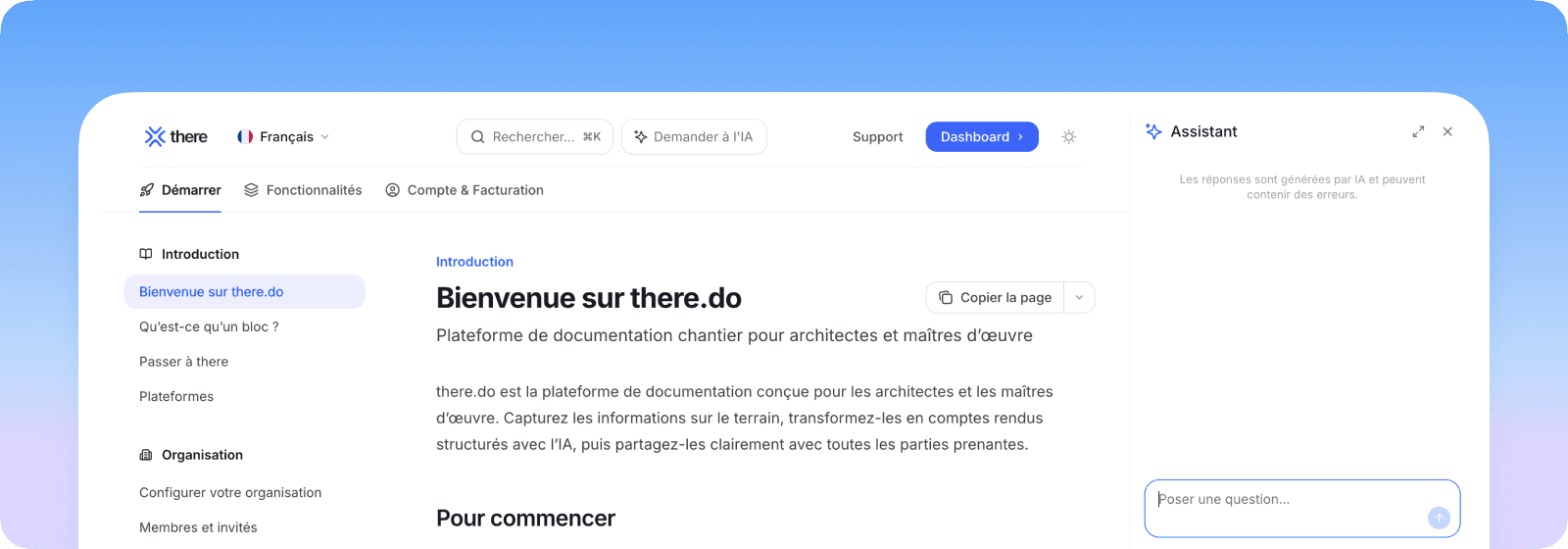 Notre documentation est désormais disponible sur docs.there.do. Vous y trouverez les guides d'utilisation des fonctionnalités, la disponibilité par offre, ainsi que les ressources pour bien démarrer. Le contenu continuera d'être enrichi au fil des prochaines versions.