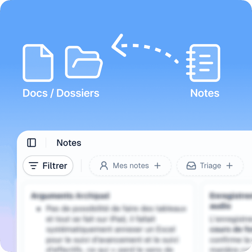 De nouveaux filtres ont été ajoutés pour retrouver vos notes plus facilement : filtrez par dossier, ou utilisez le filtre rapide Triage pour afficher uniquement les notes sans statut terminé ou sans dossier. Particulièrement utile si vous utilisez vos notes comme zone de collecte avant de produire un document : identifiez d'un coup d'œil ce qui reste à traiter ou à ranger.
