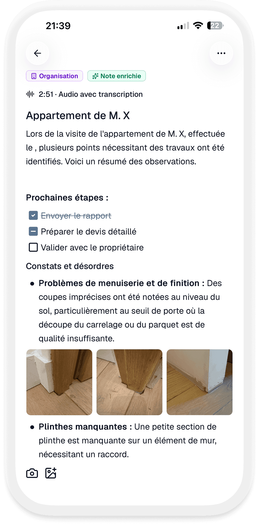 Que vous soyez expert-consultant créant des rapports détaillés, professionnel du bâtiment documentant vos chantiers, ou chercheur organisant votre veille technique, notre solution s'adapte à vos besoins spécifiques. Ne laissez plus aucune information cruciale vous échapper : capturez-les au fil de l'eau, puis transformez facilement ces notes en documents professionnels impeccables.